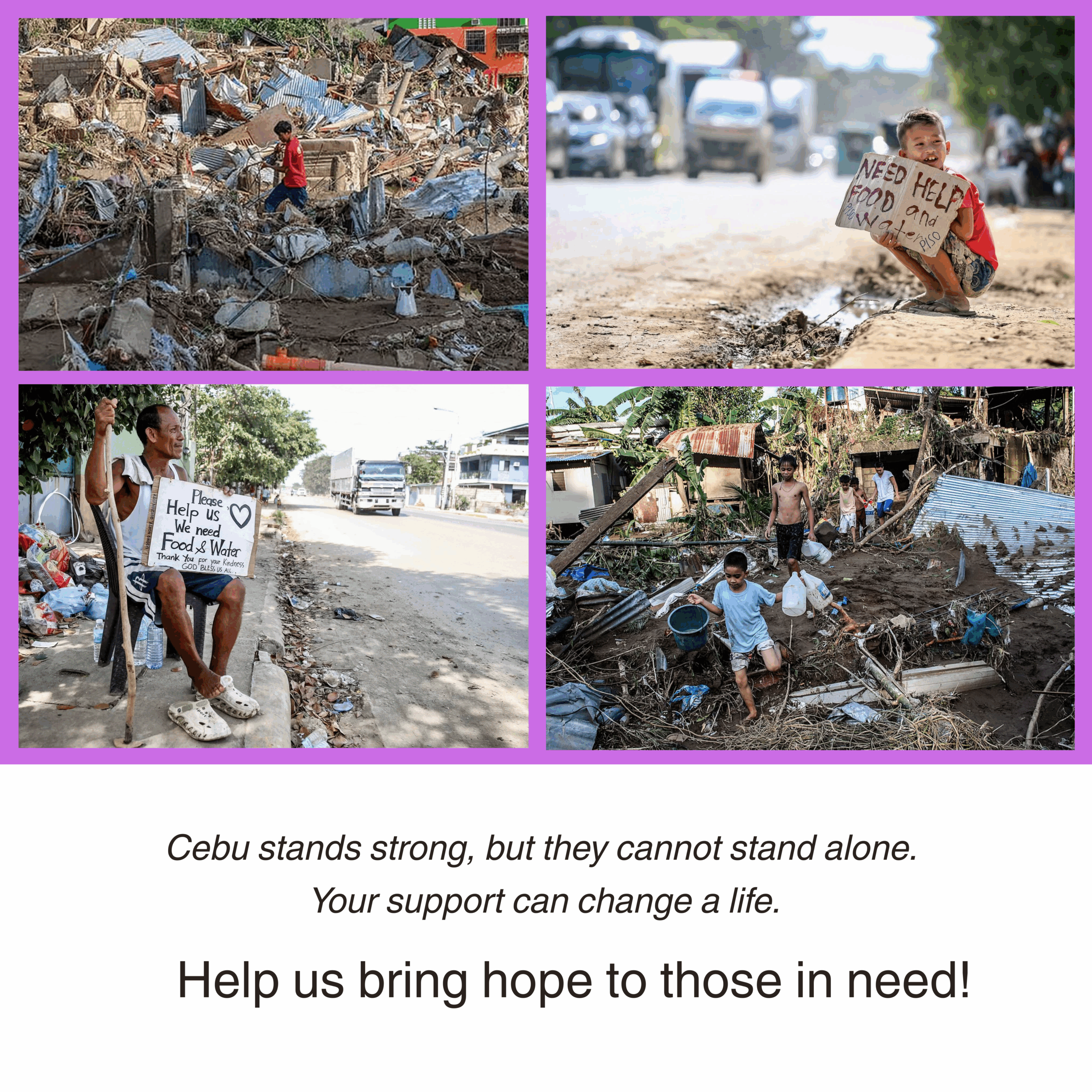 Your donation provides immediate life-saving support for families affected by Typhoon Tino.
